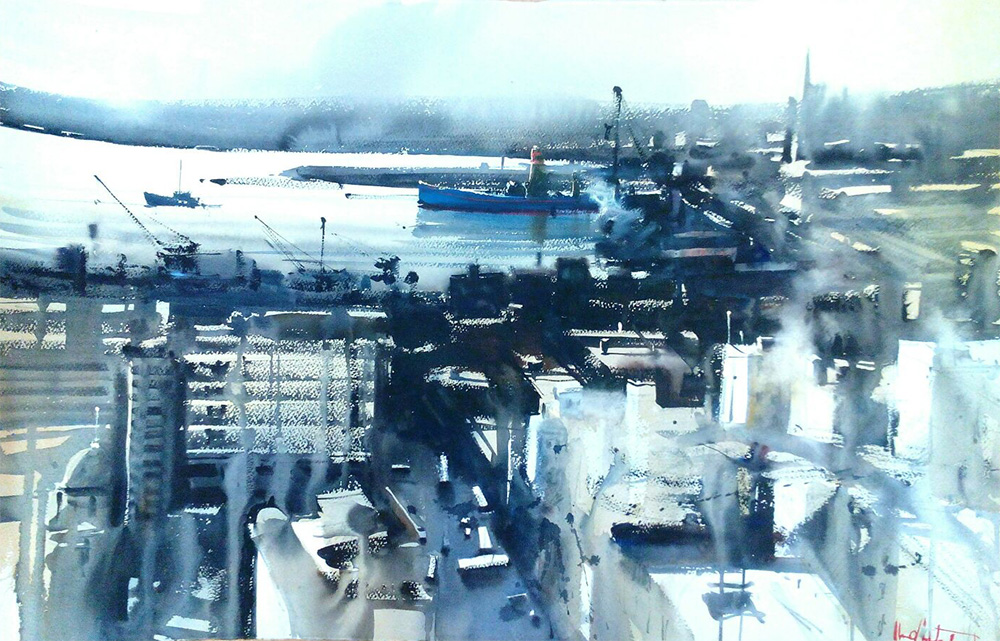 La pintura a la acuarela de este artista (en relación a otros acuarelistas) es una obra gratamente contemporánea (decir que invita a pintar al que la observa), fresca, luminosa, poco hecha, totalmente sugerente, despojada de toda anécdota, sus fuertes claroscuros cromáticos hacen la delicia del espectador.