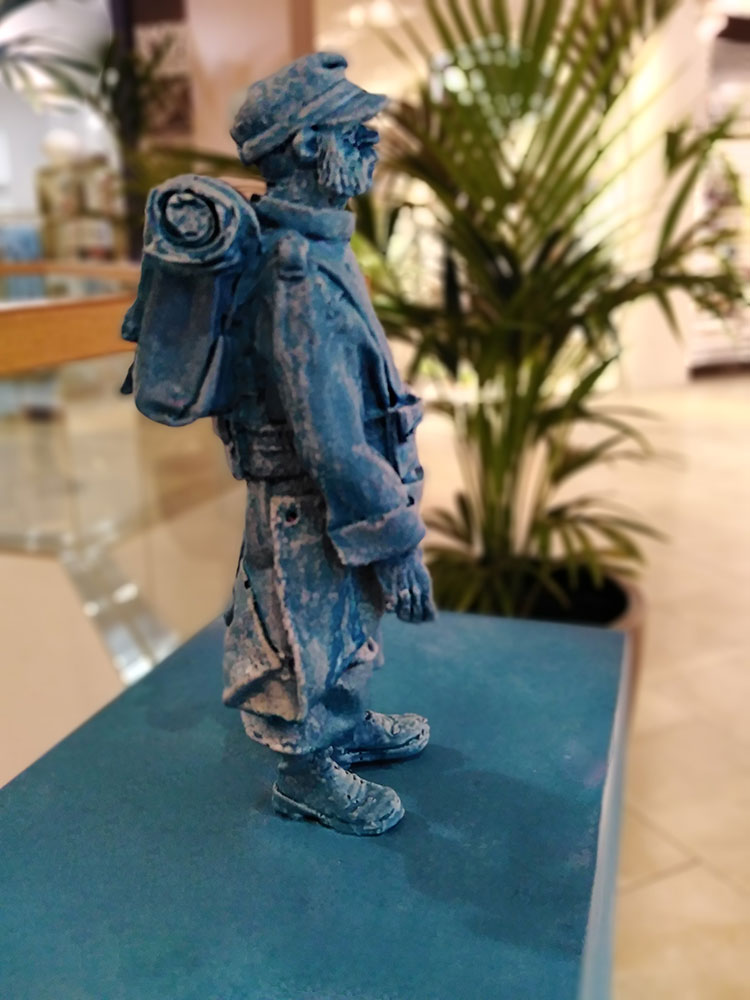 Por otro lado, Roberto Reula mira hacia el interior ahondando en verdades sustanciales al ser. En su escultura, el individuo se presenta ante el espectador como arquetipo del hombre contemplativo. Sus personajes de cuerpos pesados y carentes de gracia son modelados por una mano experta que no duda en experimentar con la combinación de diferentes materiales: bronce, hierro, mármol, gres, madera, resina de poliuretano, etc. Asimismo, el color se aleja de su finalidad imitativa para posicionarse como elemento con autonomía propia, orientando nuestra mirada hacia las piezas claves de cada una de las obras, generando nuevos significados e incrementando su carácter evocador.