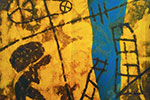 En algún lugar se mezclan los símbolos más antiguos con los distintivos propios de las tendencias de actualidad y se forma entonces una imagen cuya fuerza telúrica avanza a toda velocidad hacia el futuro. Son las confusas y fugaces visiones de Merche Olcina (Madrid,1955), un mundo de colores borrosos, de fragmentos animados por la propia pasión de pintarlos. Acaso proclame abierta mente la pintora que, con este universo de ritmos vertiginosos, la verdad está en el movimiento, que no es posible detenerse si se quiere describir lo que se ve, tan sólo dejar constancia de un inaprehensible cambio que podría constituir la verdadera esencia del suceso. Así, la luna es un símbolo, sin duda y también lo son el árbol, la hoja, el barco y la estrella, pero, detrás de ellos en un fondo infinito, se agitan aun los millones de misterios por desvelar el magma de las emociones.