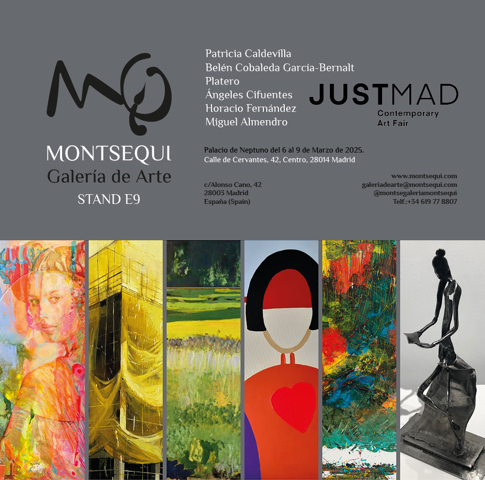 En JUSTMAD 2025, Galería de Arte Montsequi presenta la obra de seis artistas contemporáneos, ofreciendo a los asistentes una oportunidad única para explorar y adquirir obras de vanguardia. Este proyecto examina cómo estos artistas utilizan la pintura y la escultura para abordar temas universales, reflejando tanto sus procesos individuales como sus perspectivas únicas. Esta selección es una invitación, ofreciendo la posibilidad de enriquecer colecciones personales o iniciar un viaje como coleccionista. La Galería de Arte Montsequi se complace en facilitar el encuentro entre el público y el arte, proporcionando la posibilidad de adquisición de obras significativas.
